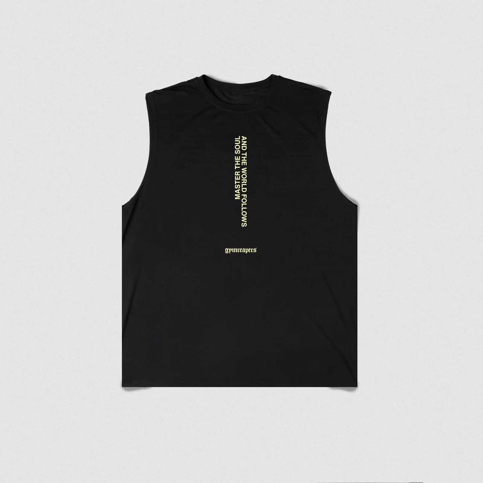 La camiseta sin mangas Master the Soul ofrece versatilidad para el día a día, priorizando la comodidad, la libertad de movimiento y el estilo. Confeccionada con un tejido de malla elástico y ligero, presenta una estructura de punto transpirable que se siente fresca al tacto. El material se seca rápidamente, tiene un acabado antimicrobiano y conserva su forma con el uso repetido.