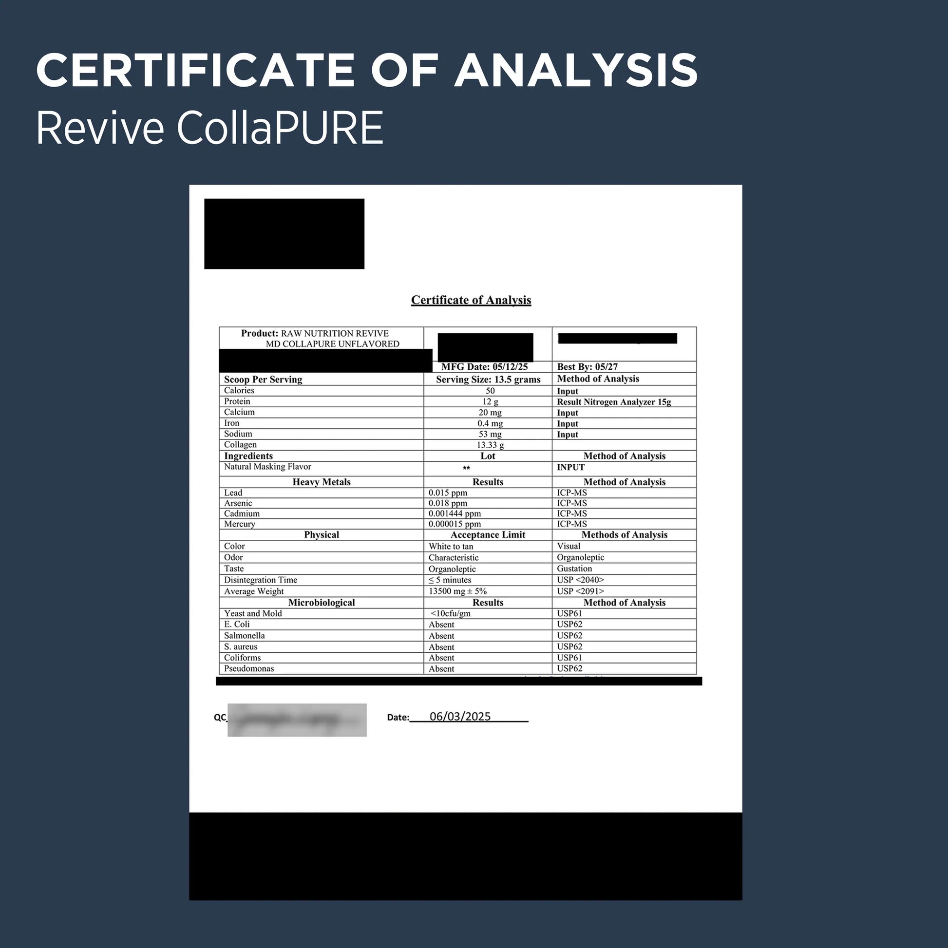 Este suplemento también está enriquecido con vitaminas y minerales, como la vitamina C y la biotina, que favorecen la producción de colágeno y promueven la salud de la piel, el cabello y las uñas. Si busca colágeno en polvo, Collapure de Revive es un suplemento de alta calidad que satisface eficazmente las necesidades de colágeno de su cuerpo.